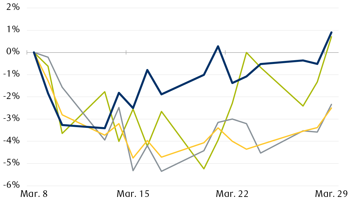 Source – RBC Wealth Management, Bloomberg; data from 3/8/23 – 3/29/23