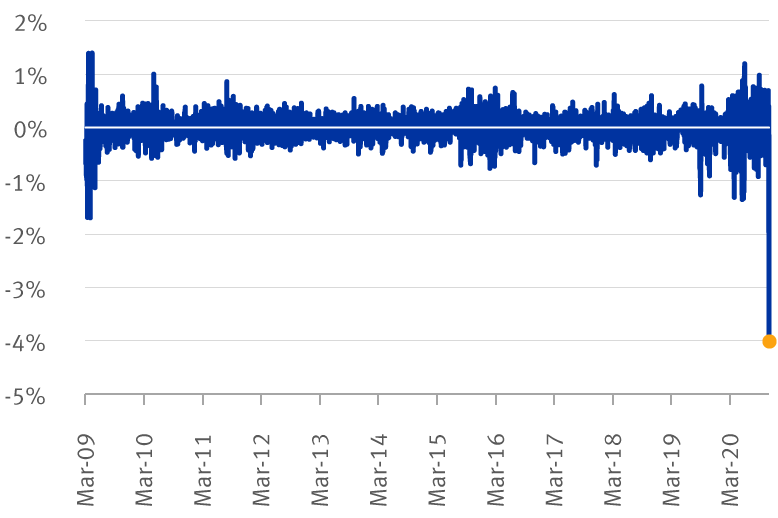 The S&P 500’s move camouflages an aggressive rotation in equity markets. Momentum strategies, in which investors buy securities when their prices have been rising and sell those when they have been declining, had their worst performance since 2009. The FAANGs (Facebook, Amazon, Apple, Netflix, and Google parent Alphabet), which have led market gains since March, also retreated abruptly. These technology companies’ business models have thrived in the COVID-19 era, with their stocks being widely perceived by market participants as defensive investments in these difficult times. Globally, megacaps underperformed riskier small caps. Struggling Financials and Energy stocks roared upwards. Meanwhile, the oversold FTSE All-Share Index, a broad index of UK stocks, closed up approximately five percent, a rarely seen showing and its second-best performance since the 2016 Brexit referendum.